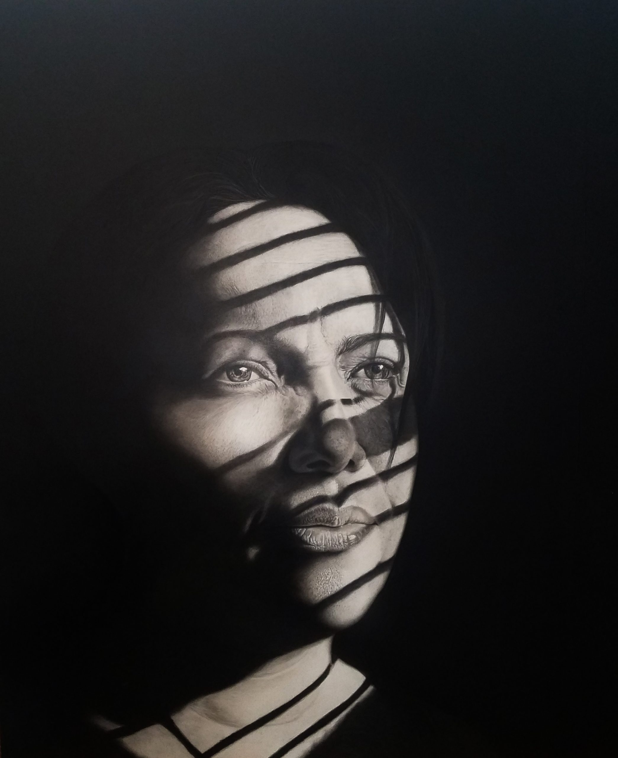 In recent years I have felt attracted, seduced, enchanted by the faces, by the psychology and the experiences of those beings that have accompanied me throughout my life. Works where the metaphysical load is deduced from the permanent struggle between the lights and the shadows, they start from my earliest experiences, which come from childhood, from my way of perceiving the world at that stage. Currently, I have found a way to express the feeling related to these first experiences. Now from a sharper, more mature perspective, where the drawing of familiar faces finds in my hands a way to exorcise demons. In the creative process I do not carry out a simple visual representation to show the realistic charcoal drawings. Rather, I intend to show a kind of thesis where premonitions are part of those beings, who tell what the viewer does not know. The shadows in my works are voices that struggle to be heard, darkness that suggests a dramatic atmosphere that can mutilate or exalt the psychology of those represented.