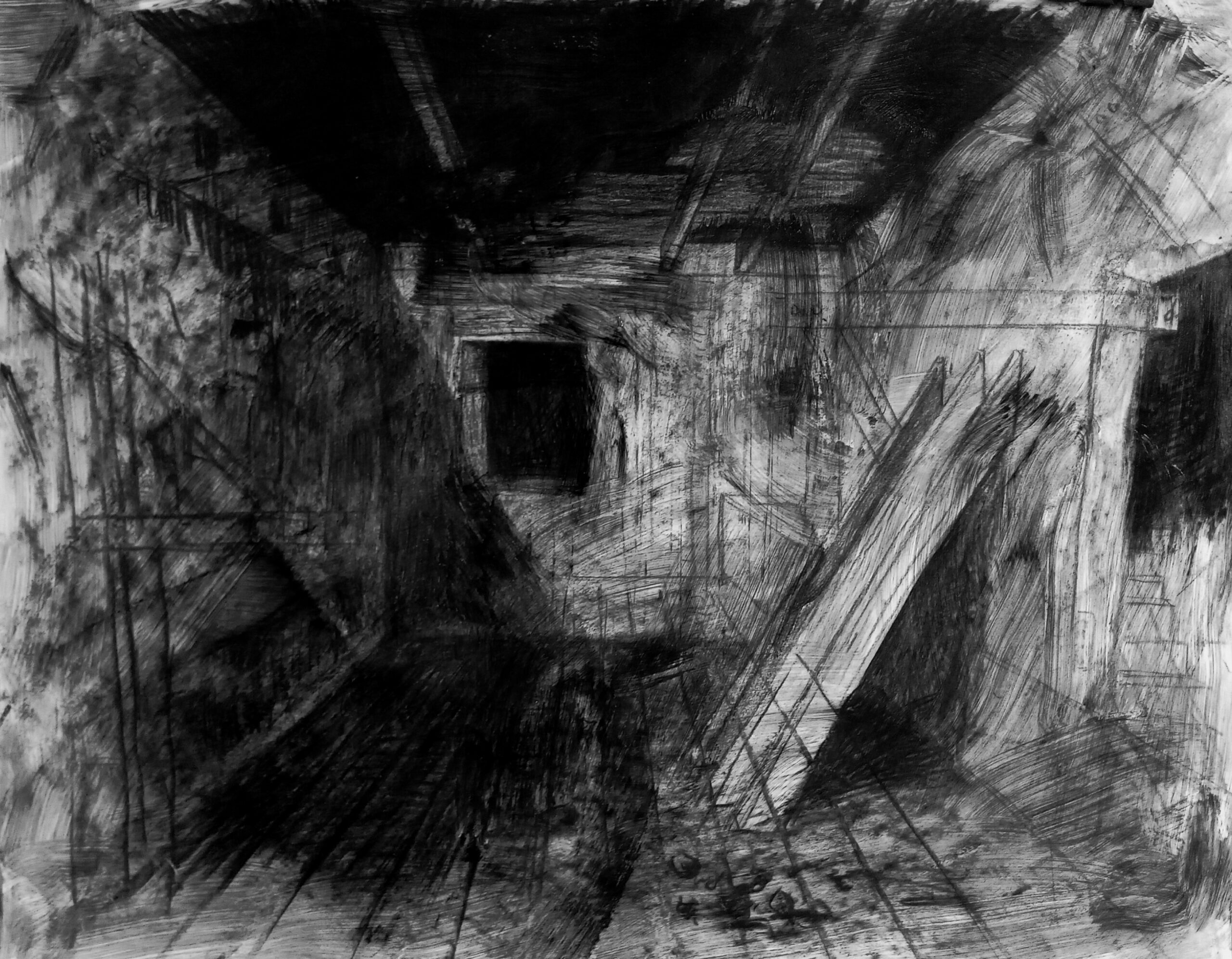 These drawings are a reinterpretation of spaces in disuse, in ruins, to which for some time I went in search of a spiritual motivation.