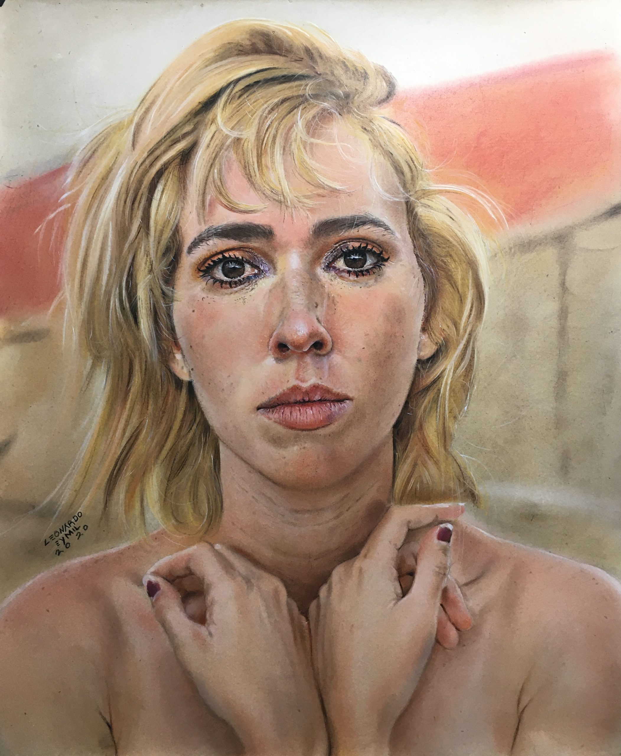 Another direct, expressive frontal portrait that draws the viewer's gaze to feel the pain that the pose and the black tears reflect.