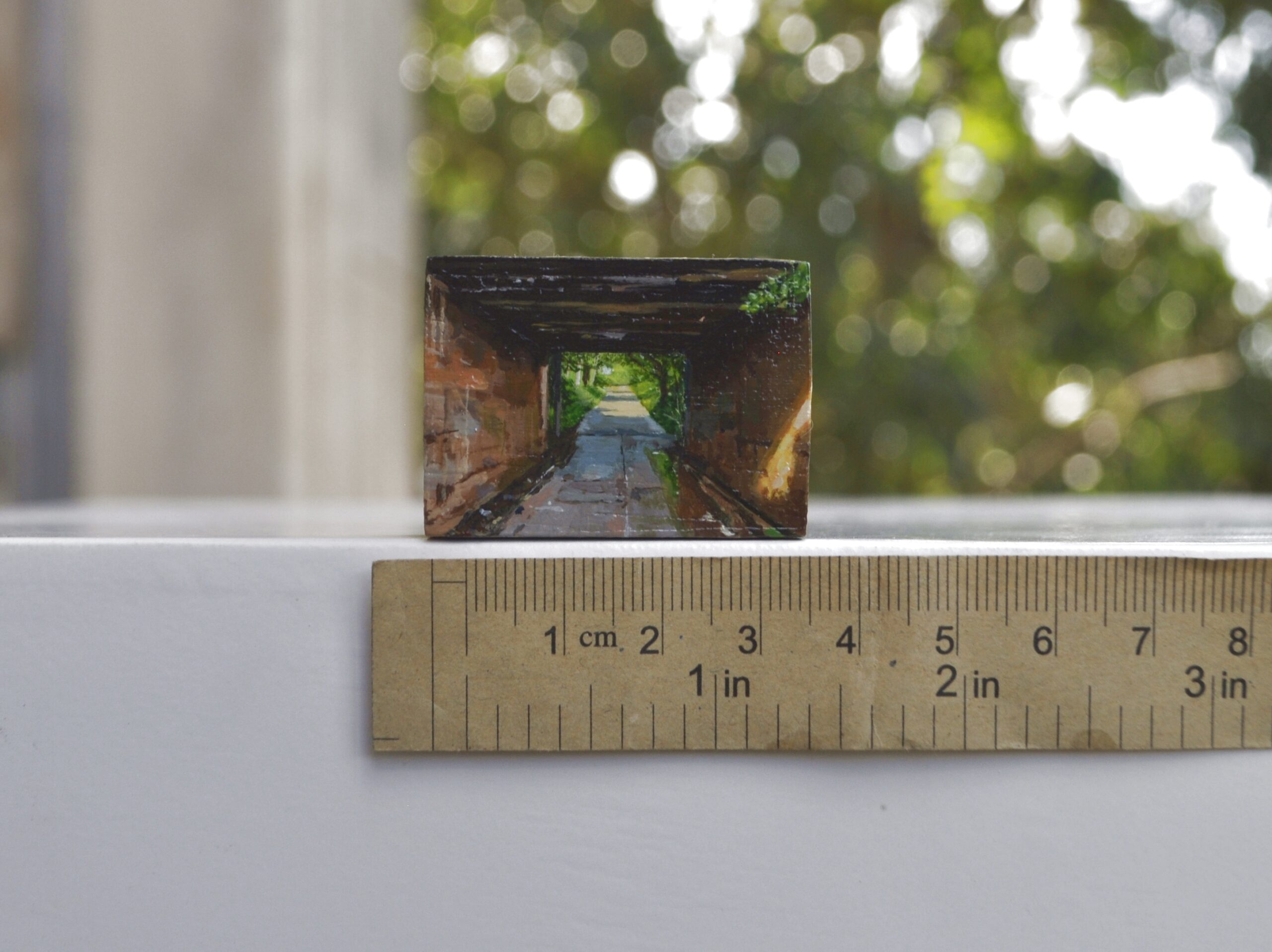 Within the world inhabit other worlds. Like a kind of fractal: that object of apparent basic and irregular structure that repeats itself at different scales, these representations of the different landscapes of ISA corroborate the above. The immensity of the outside world reinterpreted and adapted to this small format is also my inner world, the landscapes I travel through, the places I visit, awaken in me the need to create, and I aspire to do with them what they do with me. Pure symbiosis: they inspire me, I make them transcend.