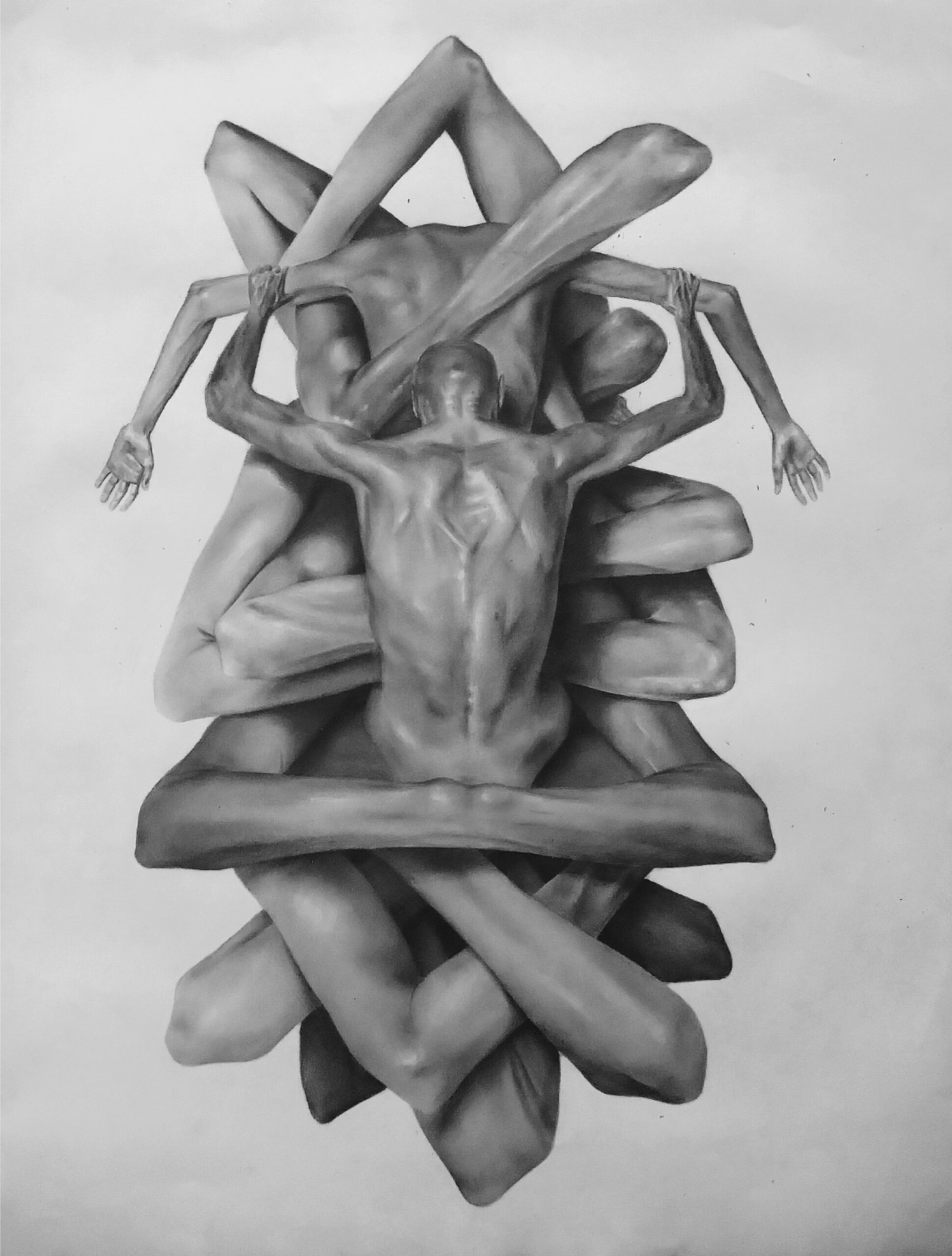 "Portrait of Open Eyes" is a series composed of five medium-format pieces created using traditional drawing techniques. It emerged as a cathartic act in response to the phenomenon that disrupted my artistic work for years. Anxiety, fear, and unrest were the psychological remnants after years in which epileptic seizures shaped my daily routine. Each piece reflects crucial moments on the path toward catharsis and resurgence, where art served as a channel for processing guilt, anger, and helplessness, allowing me to embrace vulnerability and exposure in an act of intimate reconciliation and self-discovery.