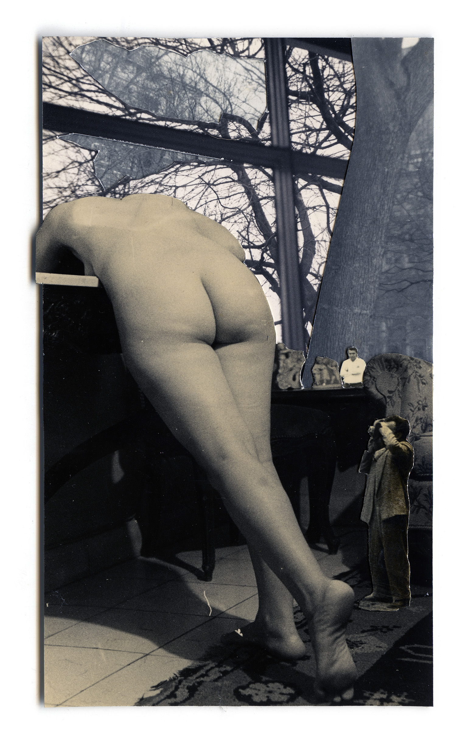 I appropriate found testimonies spanning from the 1920s to the late twentieth century; I archive them, classify them, and transmute them into new metaphors. I manipulate consciously, meticulously constructing other realities—juxtaposed, assembled, mutilated—without attempting to conceal the traces of time on the paper or the seams produced by these photomontages.