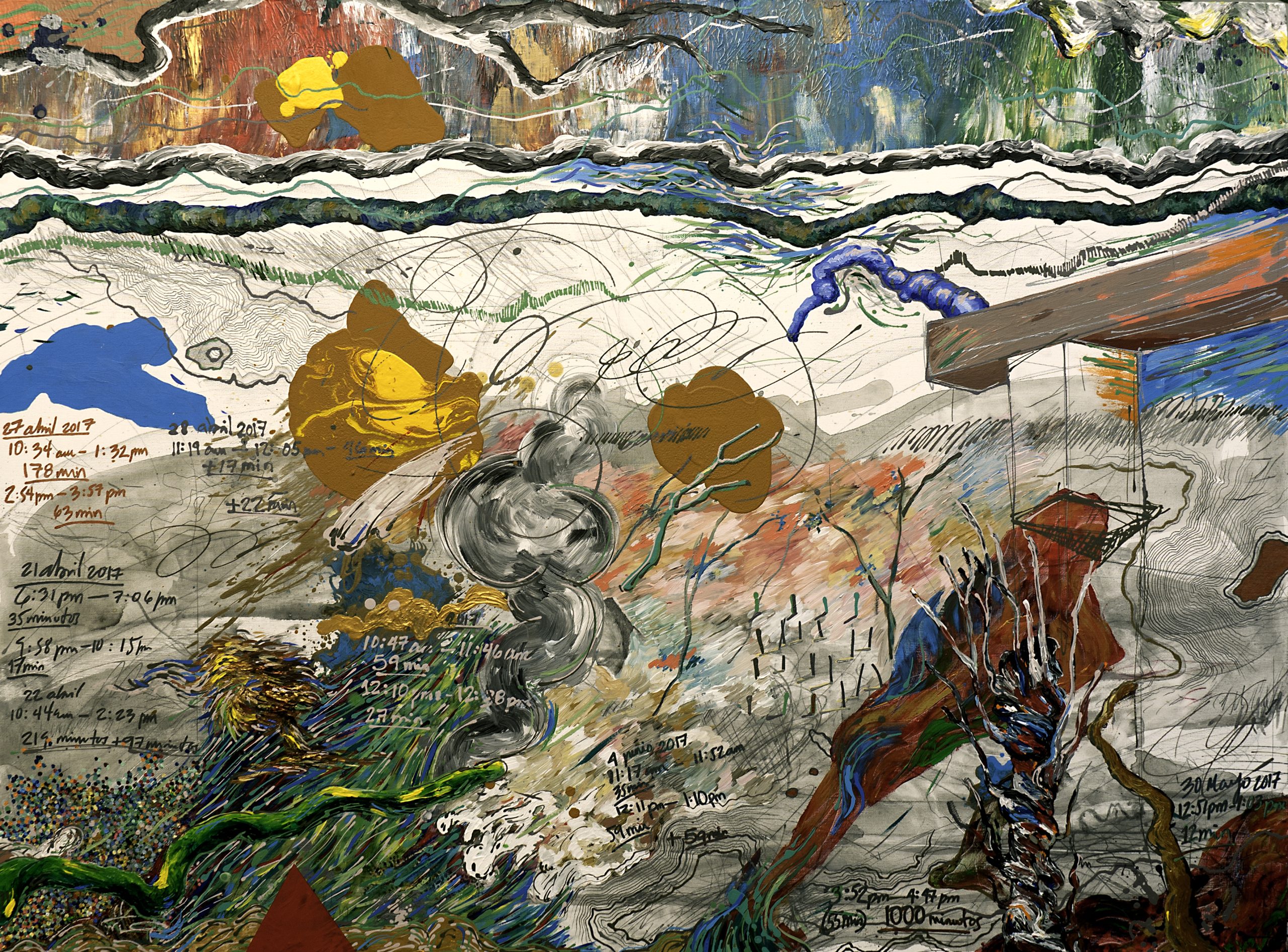 With these works I am interested in exploring the existence of a common point between past memories (mostly associated with experiences in the different landscapes of Cuba) and the exercise of free creation in the present. In this way, the works make up a kind of experiential map that graphs my presence in reality, always enhancing the relationship between the elements of space, time and psychic automatism.