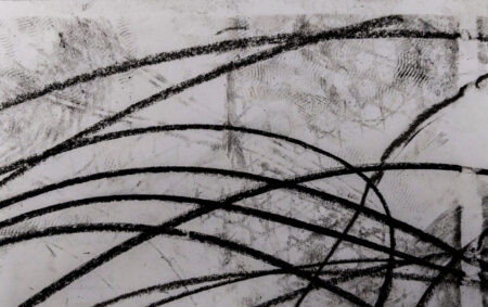 Drawings resulting from the performance "Gestual No.21: Romance". Romances represented in abstract drawings of small format, resulting from reiterative and cyclical movements made on their knees and with two hands on paper fixed to the floor in an "action drawing" performed live. The drawings have traces of the work with the body on the paper and shoe marks of some of those present in the performance.