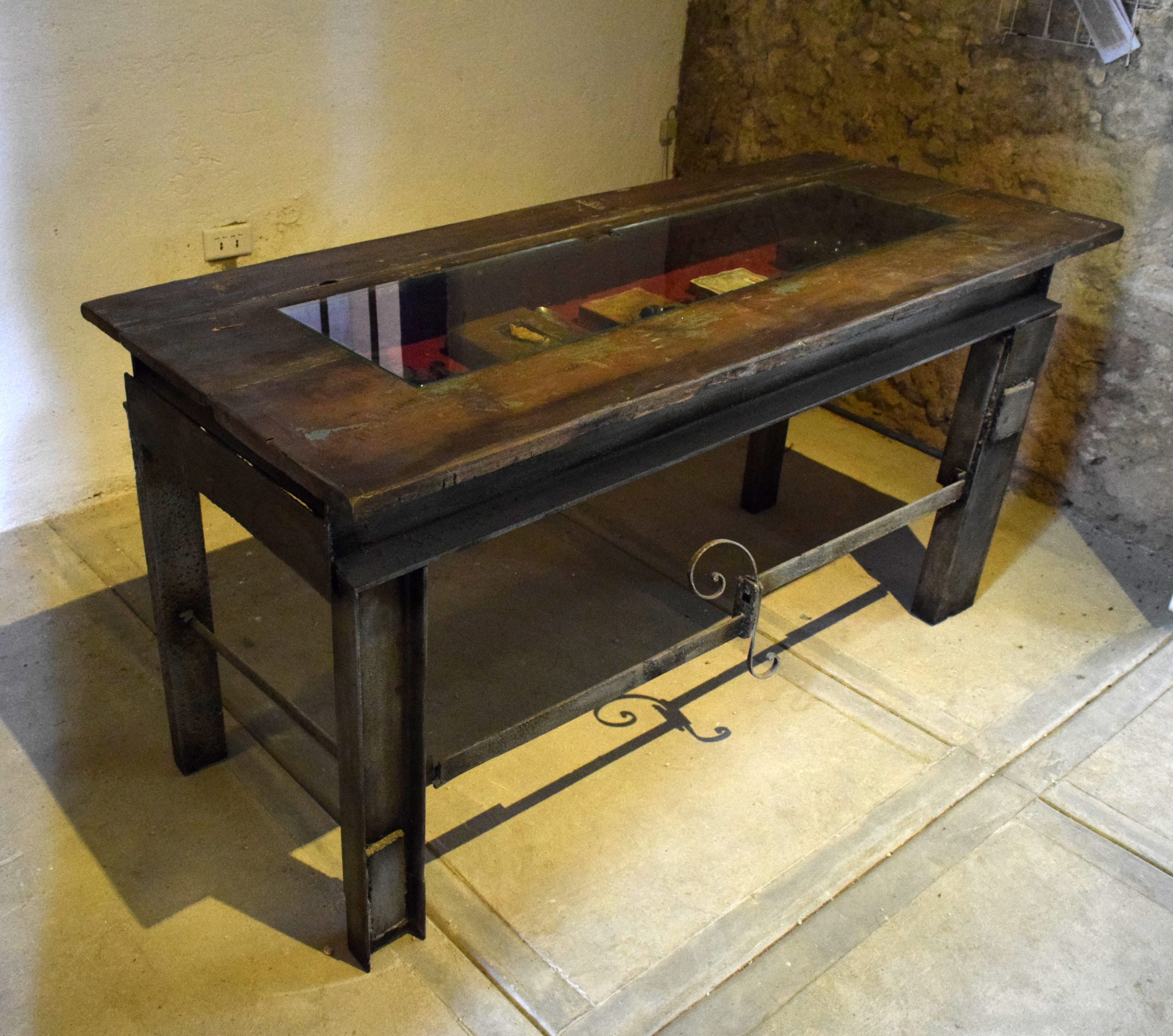 Metal table, intervened books, plastic and paraffin331321