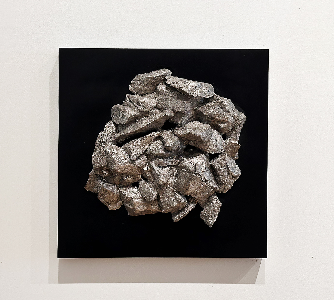 “Jewel 7”, from the series “The Jewels of Cassiopeia”, addresses the landscape, elements that are part of the common visual landscape, in a peculiar sculptural form. The work proposes an understanding of sculpture away from the pedestal, as it takes over the wall. Like the mycelium, present in the earth communicating extensive areas of vegetation as an immense subway network, the creative work is interconnected to the environment in which we develop and to our memories. Based on this assumption, I am interested in exploring visualities that somehow refer to those spaces anchored to being and memory.