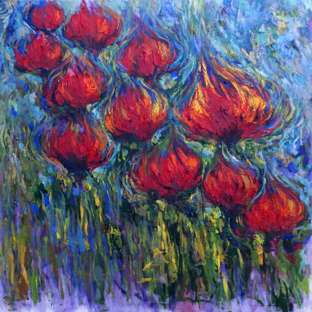Blumen aus dem Garten oder wild. Wunderschöne Blumen, in vielen Farben und Formen, gemalt im Stil der Impressionisten. Diese Auswahl ist (scheint) Schön, ruhig, harmlos … Reine Kosmetikerin-Freude. Aber der Titel der Serie lässt uns nach zweiten Interpretationen suchen.