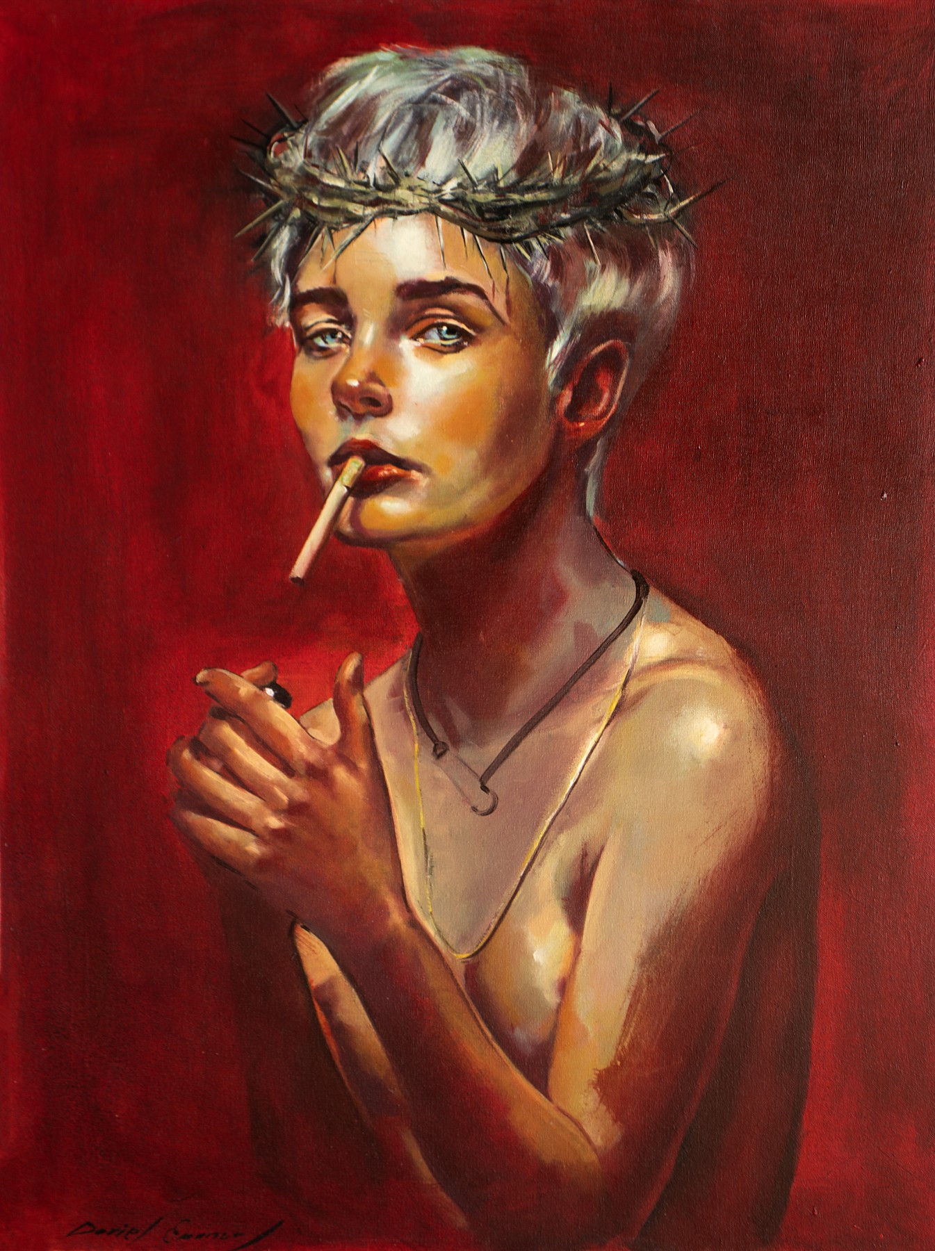 In dieser Werkreihe, Ich erkunde den Alltag anhand von Charakteren, die, wenn auch gewöhnlich, werden zu Protagonisten in Szenen voller Symbolik und Bedeutung. Die Realität verwandelt sich in ein fantastisches und fantasievolles Universum, wo das Alltägliche eine außergewöhnliche Qualität annimmt, Sie laden den Betrachter ein, seine Umgebung und seine eigene Wahrnehmung der Realität zu hinterfragen. Durch Farbe und visuelle Metapher, Ich spreche Themen an, die kulturelle und soziale Identität definieren. Jugend, der Arbeiter, und das Militär treten als Schlüsselfiguren in einem Bilddialog hervor, der die Spannungen widerspiegelt, Bestrebungen, und Widersprüche unserer Zeit. Ich versuche, die flüchtige Essenz menschlicher Erfahrung einzufangen, Ich verleihe jeder Szene eine offene Erzählung, die den moralischen und kulturellen Verfall meiner Umgebung darstellt. Diese Serie ist, im Kern, ein Raum der Reflexion, in dem das Symbolische und das Greifbare zusammenkommen, um eine universelle und zeitlose visuelle Sprache zu schaffen.
