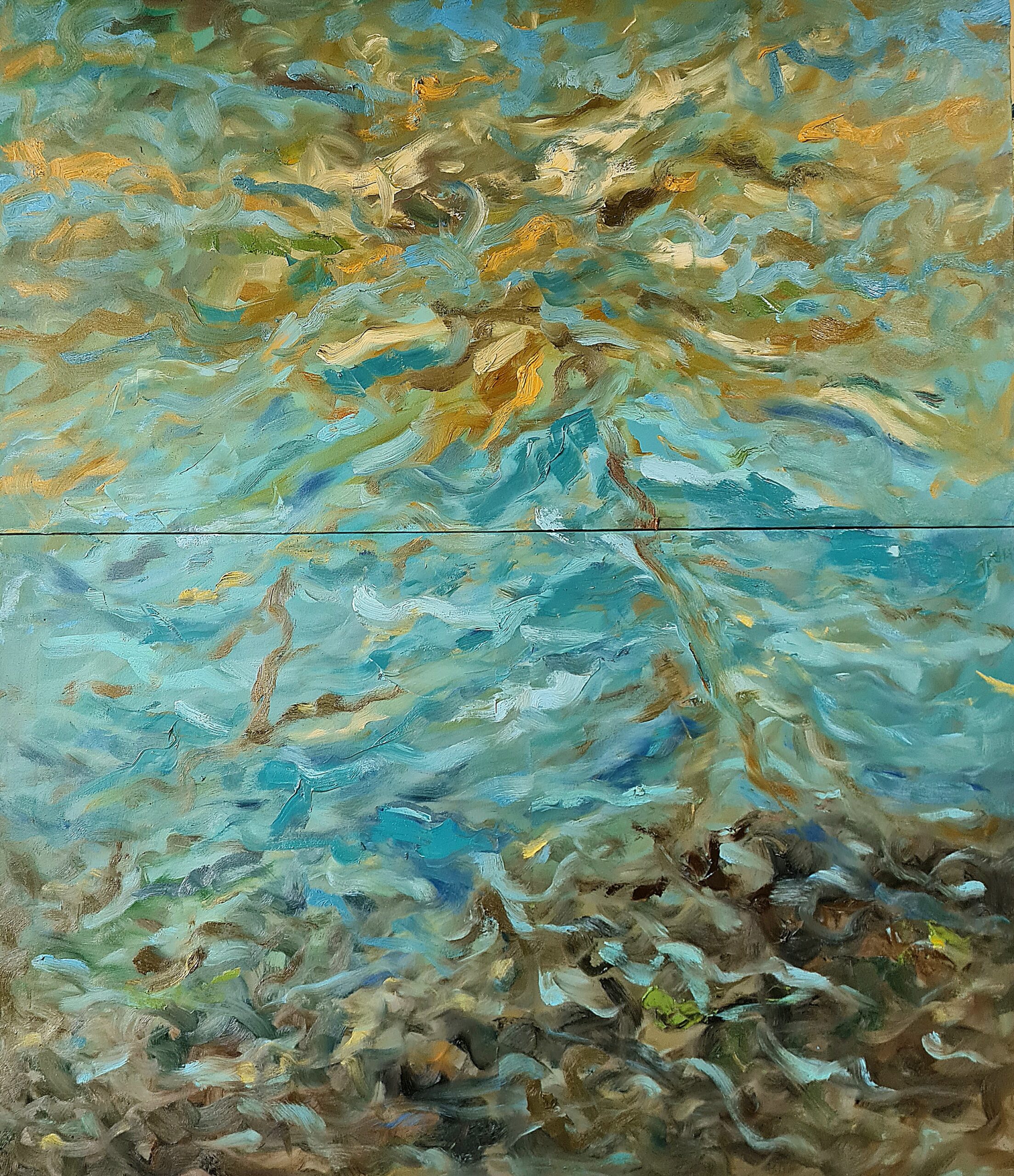 Bestimmte Koordinaten helfen uns, das Gedächtnis zu rekonstruieren.. Das offene Meer ist Teil meines Wesens, ebenso wie die Analogie zwischen der Zeit, die Bräuche des Menschen, der Zustand einer kulturellen, historisch, geografische Insel, die meine Vergangenheit geprägt haben und dies auch heute noch tun. Aber mehr als nur sein, Es ist das Gefühl wie das offene Meer, Es ist meine Metapher für die menschliche Seele. Aus diesem Grund wurde die Darstellung von etwas so Offenem wie dem Ozean für meine Arbeit unerlässlich, um die Fragmente zu überdenken, die nicht eins definieren, sondern alle Menschen, ein Kontext, eine Zeit und eine Inseltradition. Metall und Leinwand als Träger in unterschiedlichen Abmessungen, Farbe und Charakter des Flecks, Versuchen Sie, ein fast abstraktes Bild der Überreste dieses Meeres nachzubilden. Hierin liegt auch die Idee, dass die Darstellung der Erinnerung auf Fragmenten der natürlichen Meeresumwelt aufbaut, weit weg von der künstlichen Welt und den vom Menschen eingegriffenen Elementen, kommt von; ein Ort, der nicht vollständig erfasst werden kann, mit Formen, die sich ständig wiederholen, aber einzigartig und unabhängig. Jedes Werk präsentiert meine persönlichen Erfahrungen wie ein offenes Meer, manchmal unergründlich und unpassierbar, für jeden sichtbar und mit seinen verborgenen Geheimnissen im Hintergrund, temperamentvoll und fürsorglich, zugleich der Ursprung des Lebens, der Schöpfung, ohne, als gäbe es keine Zeit, keine Geschichte, keine Erinnerung.