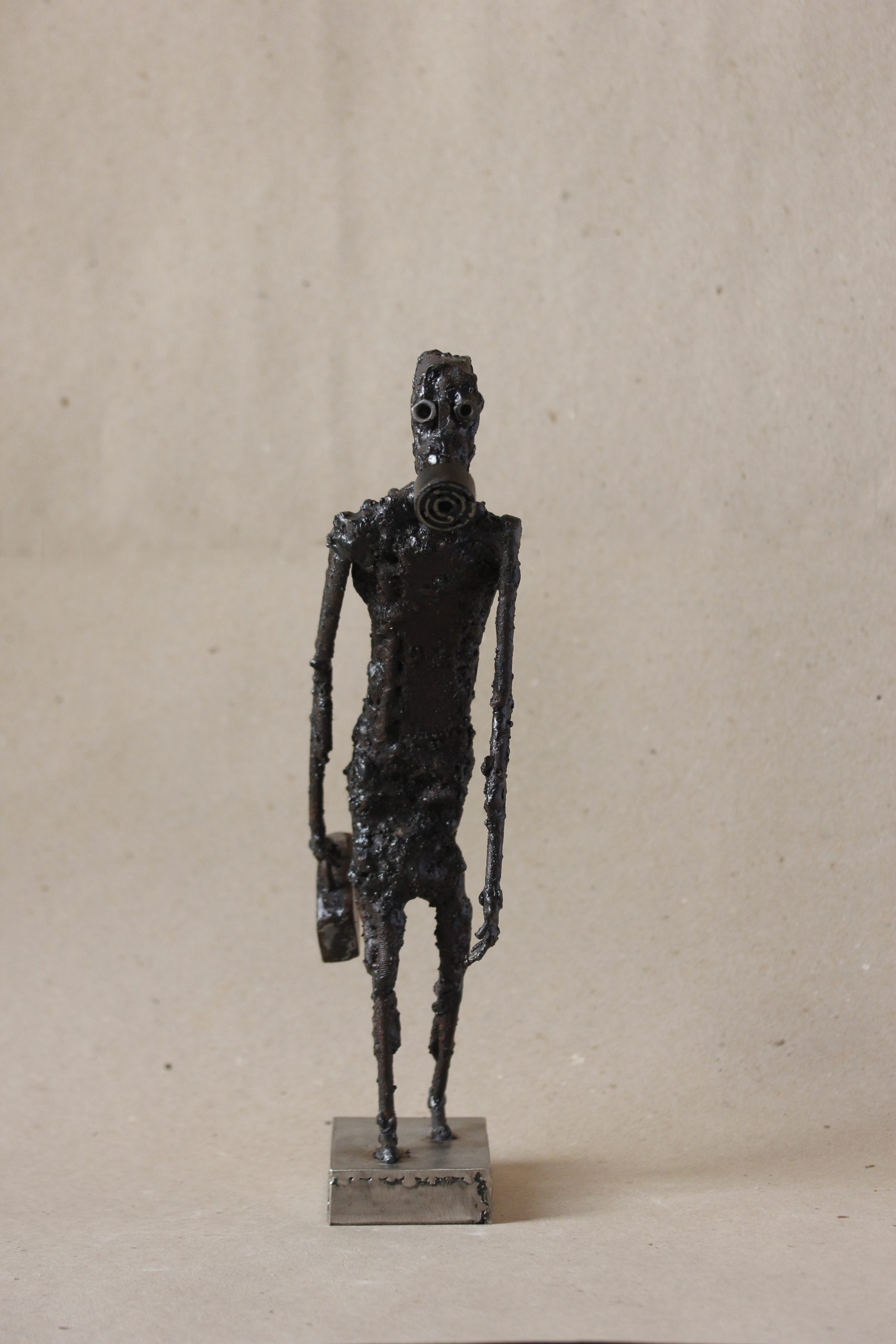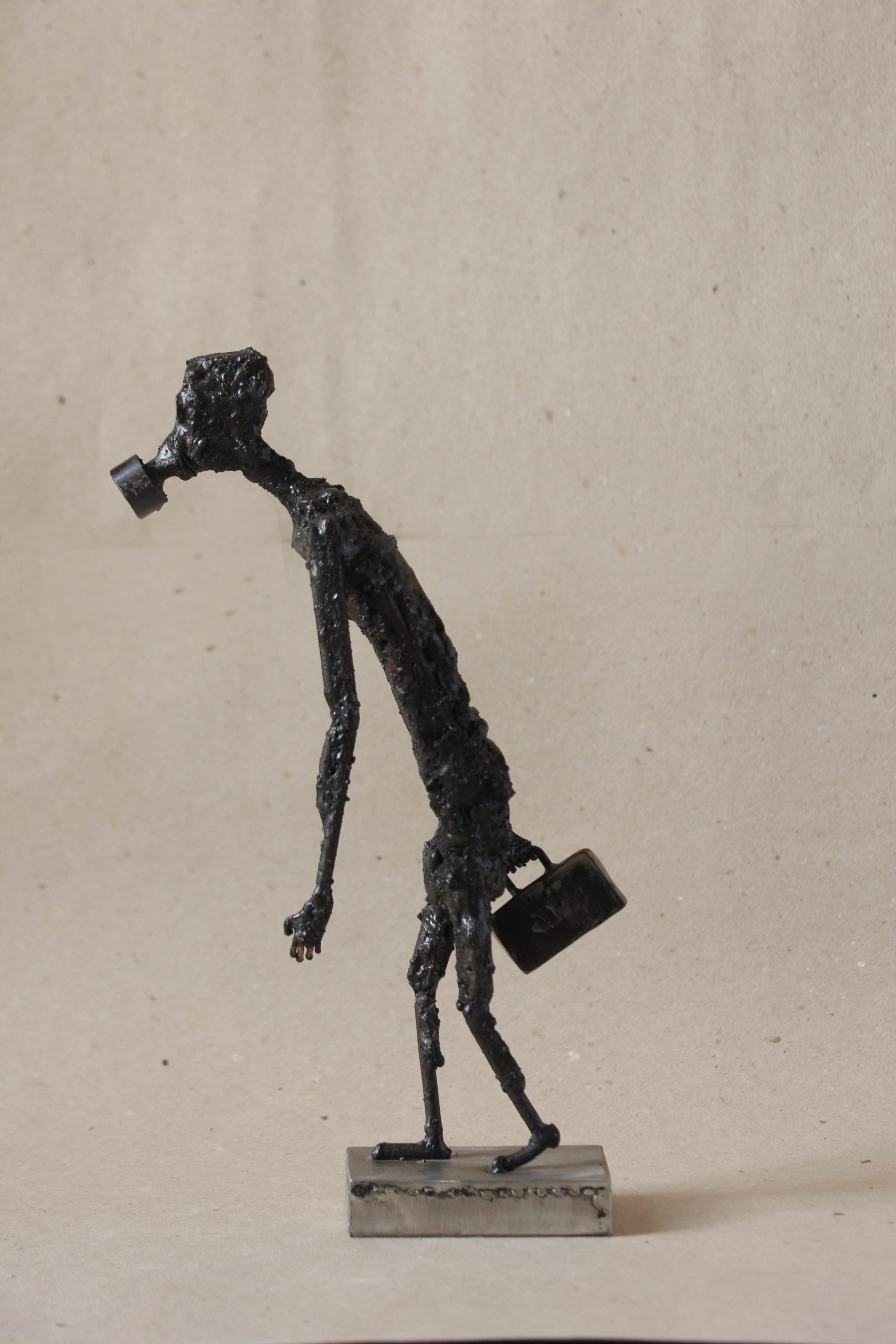 Verwendung des Metalls als Hauptmaterial, Ich erstelle Charaktere durch einen Montage- und Schweißprozess. Ich stelle Situationen nach, in denen diese Charaktere in der Zeit eingefroren zu sein scheinen, Spielen mit der Balance und der Zusammensetzung jeder Skulptur. Mein Hauptziel ist es, bei jeder Person, die meine Kunst schätzt, eine reflexive Reaktion hervorzurufen.