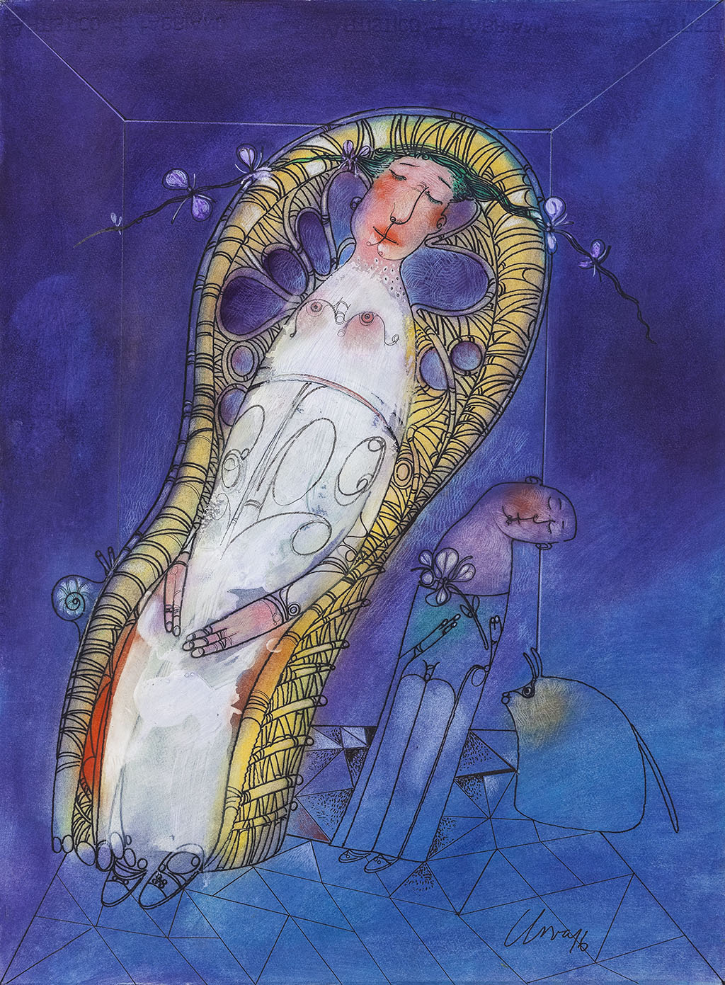 Öl, Tinte und Bleistift auf Papier