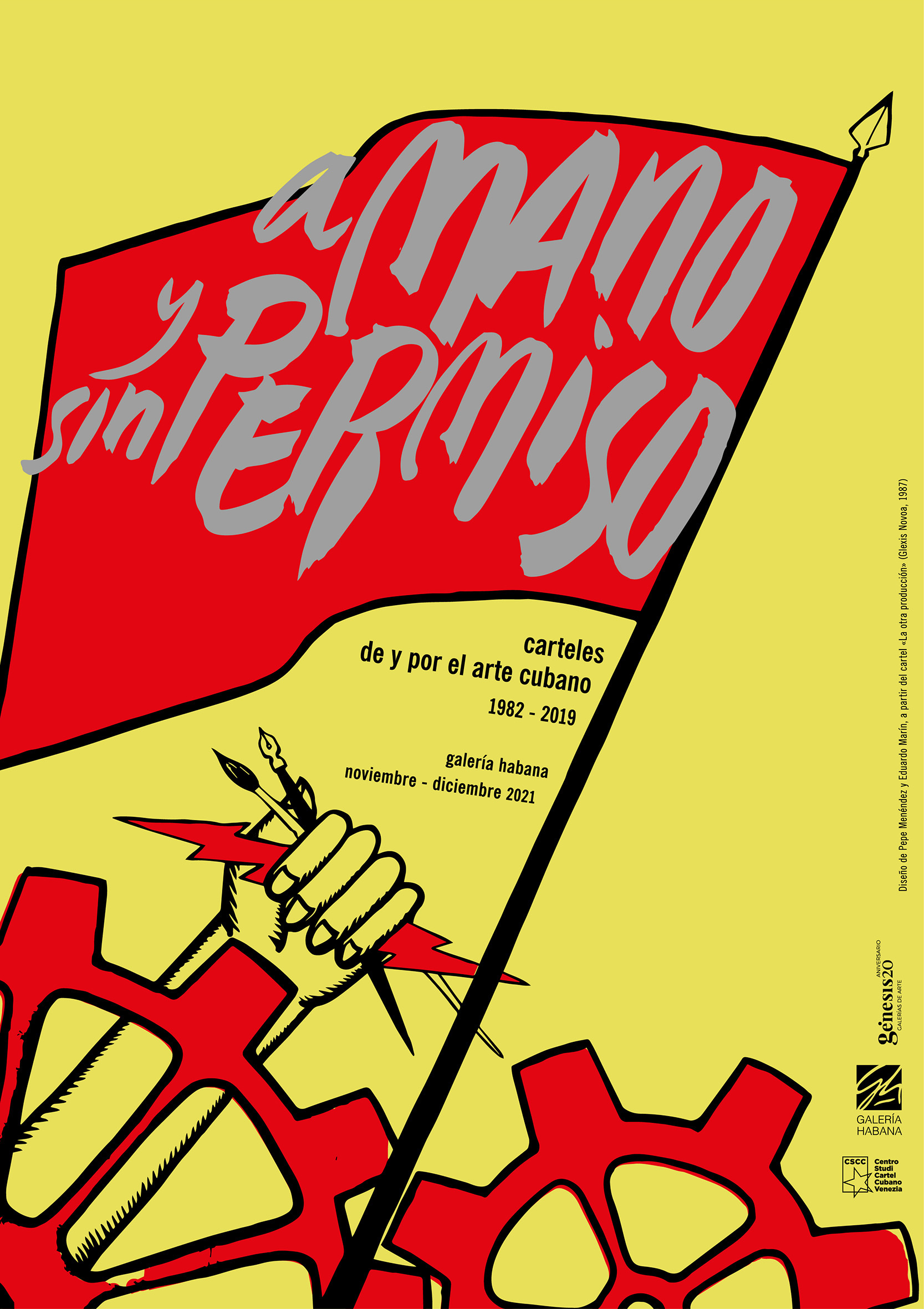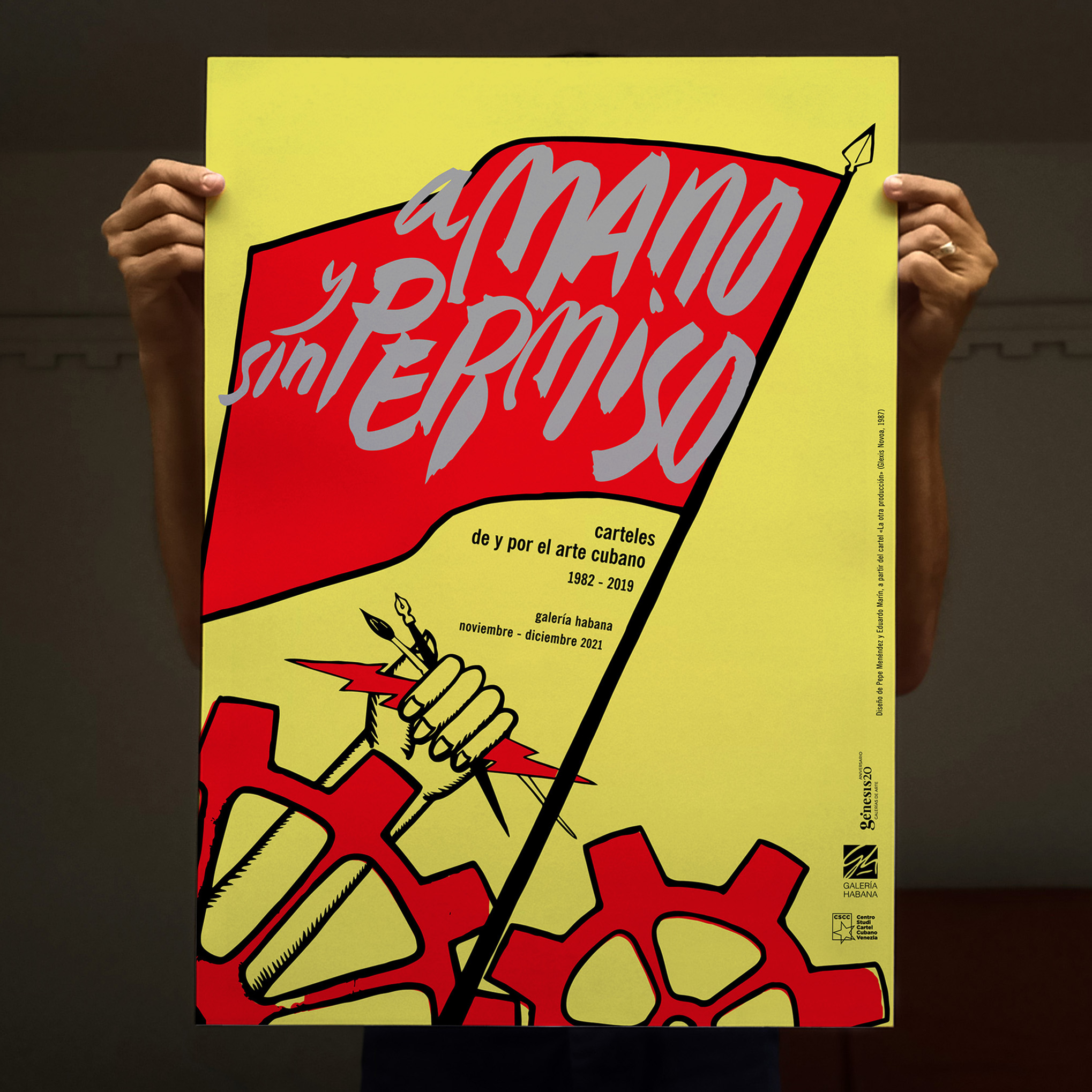 Plakat für eine Ausstellung kubanischer Plakate, die nicht von Designern, sondern von Künstlern der 80er und 90er Jahre angefertigt wurden. Die Ausstellung präsentierte die Sammlung von E. Marin, Eine kraftvolle Bilderreihe, die die kreative Szene und ihre Widersprüche auf der Insel widerspiegelt. Herr. Marín schlug die Verwendung eines Plakats des Malers Glexis Novoa aus dem Jahr vor 1987. Durch meine Intervention wurde im Grunde der Originaltext geändert, um den Titel der Ausstellung anzuzeigen.
