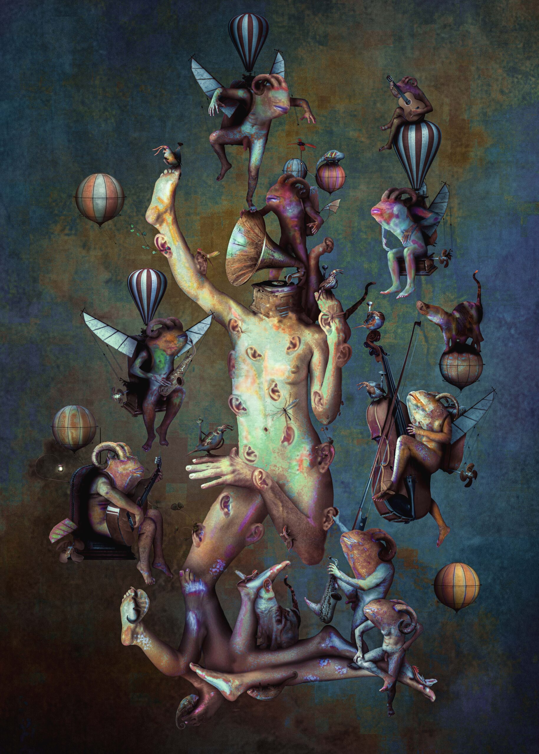 Jede Note und Farbe verbinden sich, um eine visuelle Symphonie zu bilden, die die Komplexität des Lebens widerspiegelt. Die seltsamen Wesen repräsentieren die Empfindungen und Emotionen, die durch Hören hervorgerufen werden. Musik, mit seiner Fähigkeit, Gefühle zu rühren, wird zum Leitfaden durch die traumhaften, erinnert uns daran, dass wir trotz der Dissonanzen konfrontiert sind, Es gibt immer einen Weg zum inneren Frieden.
