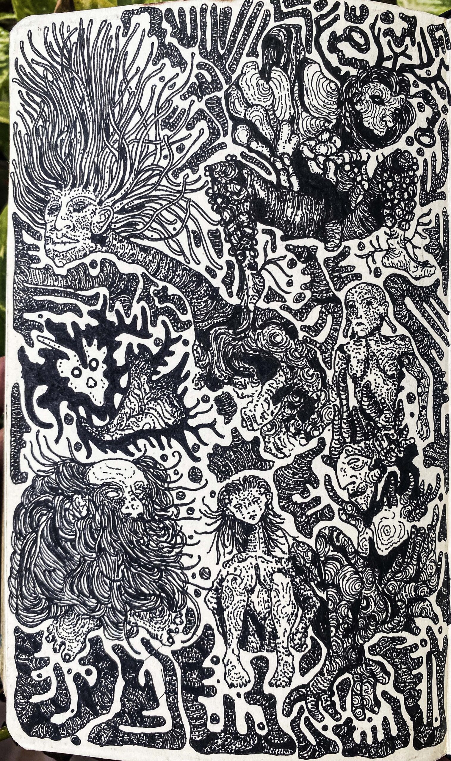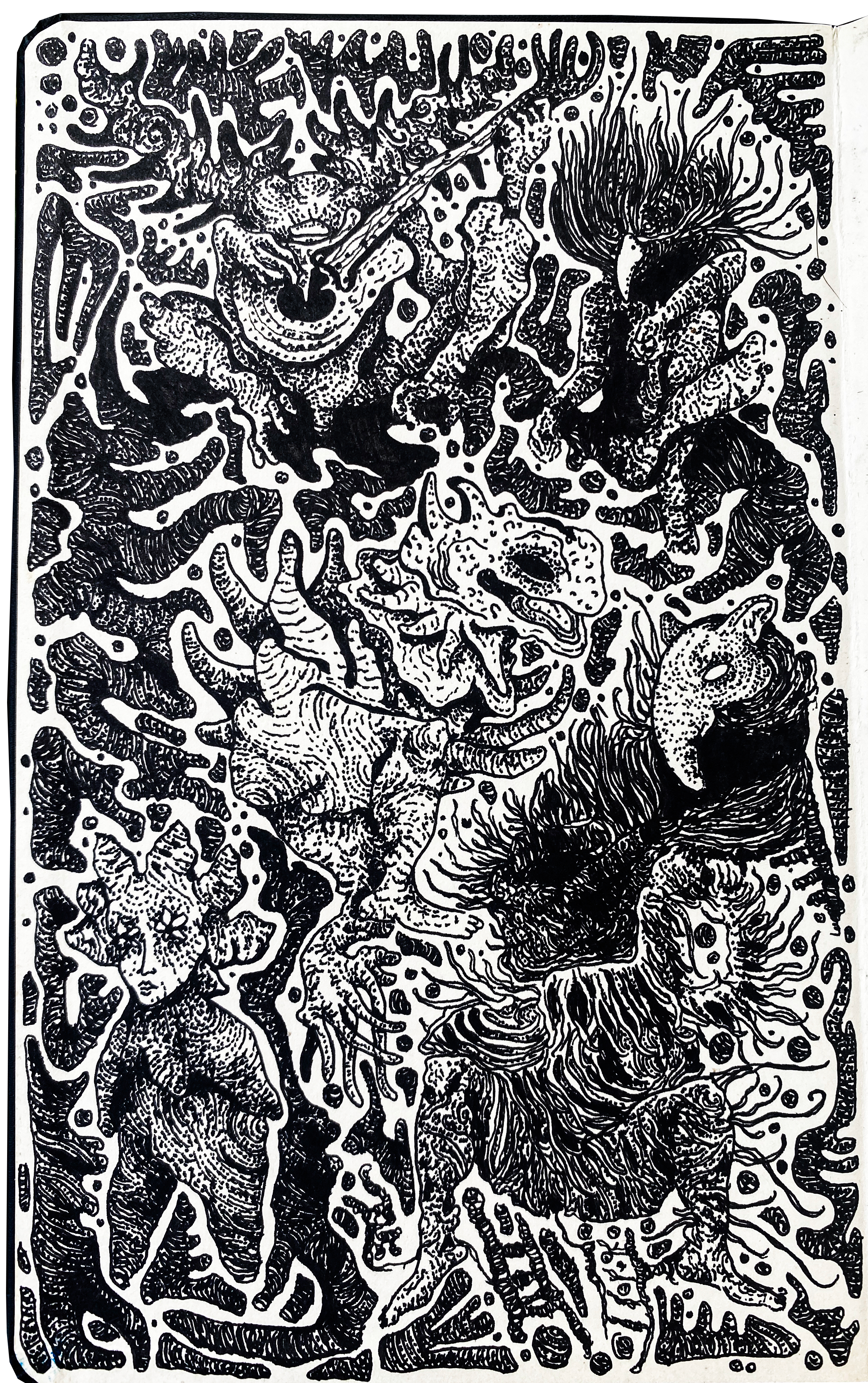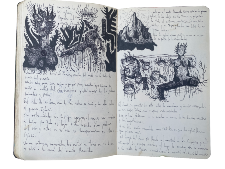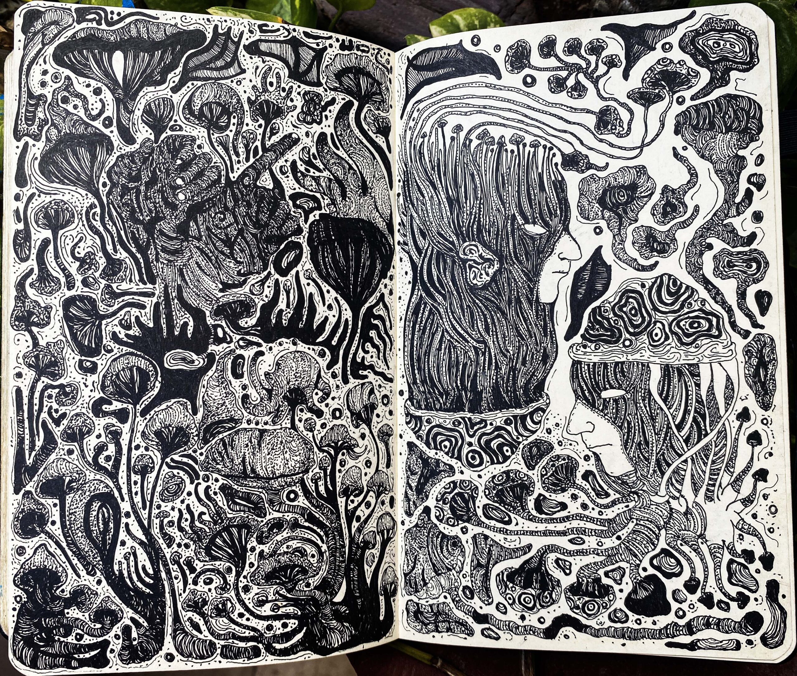 Ink drawing on porous paper notebook