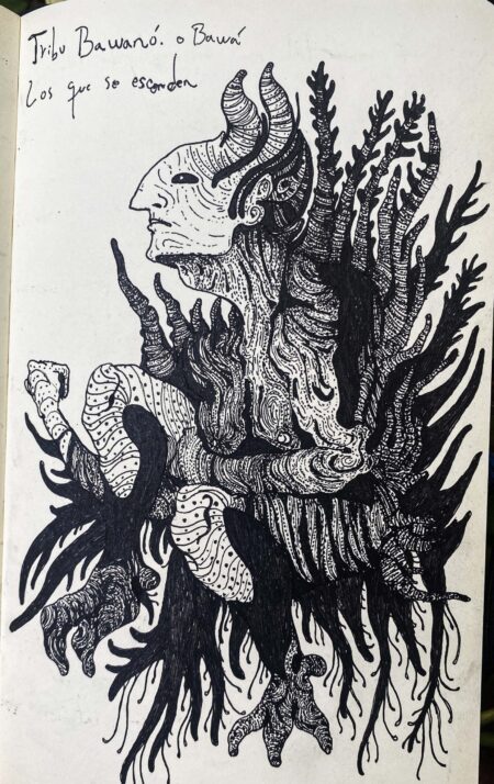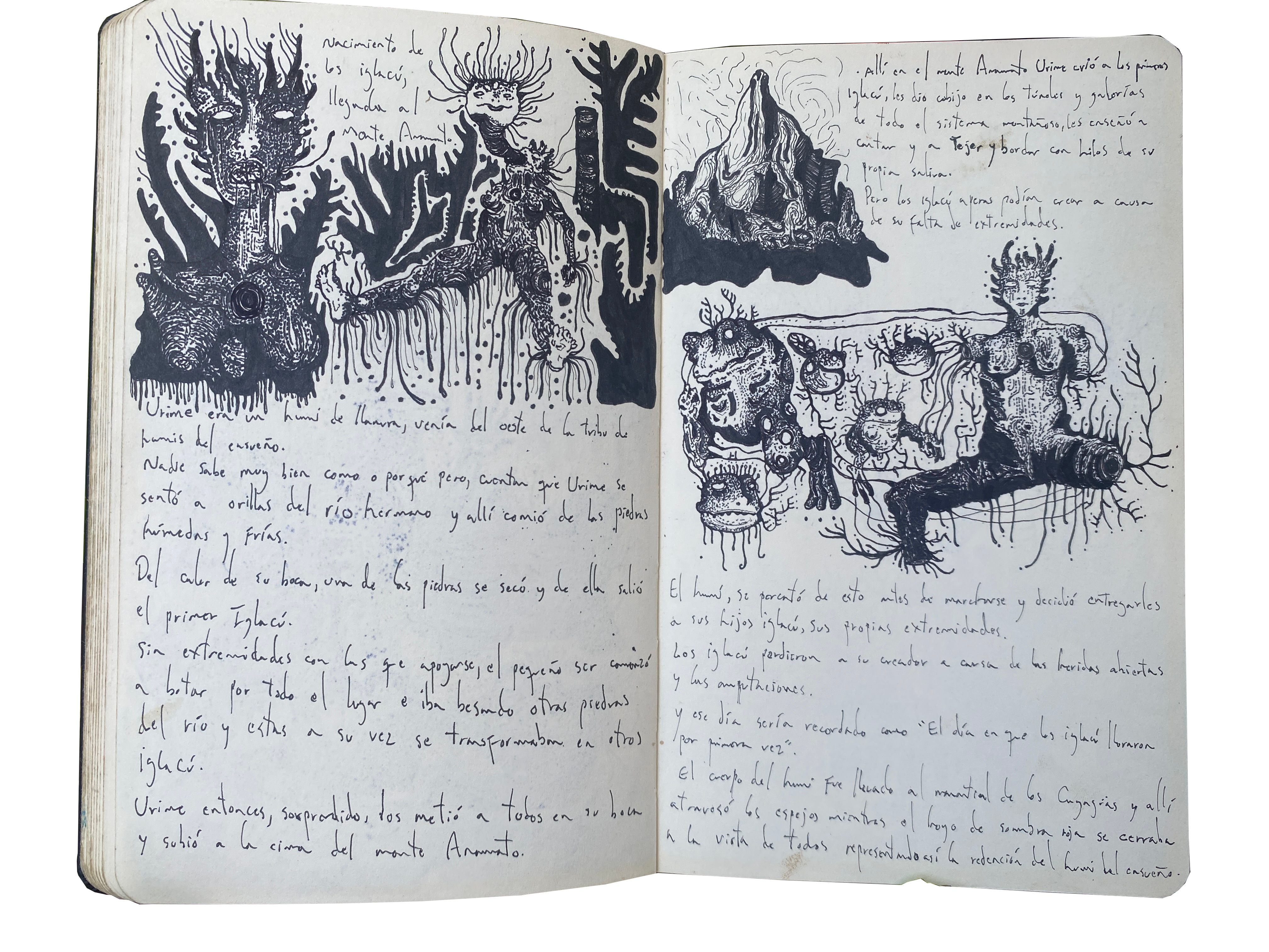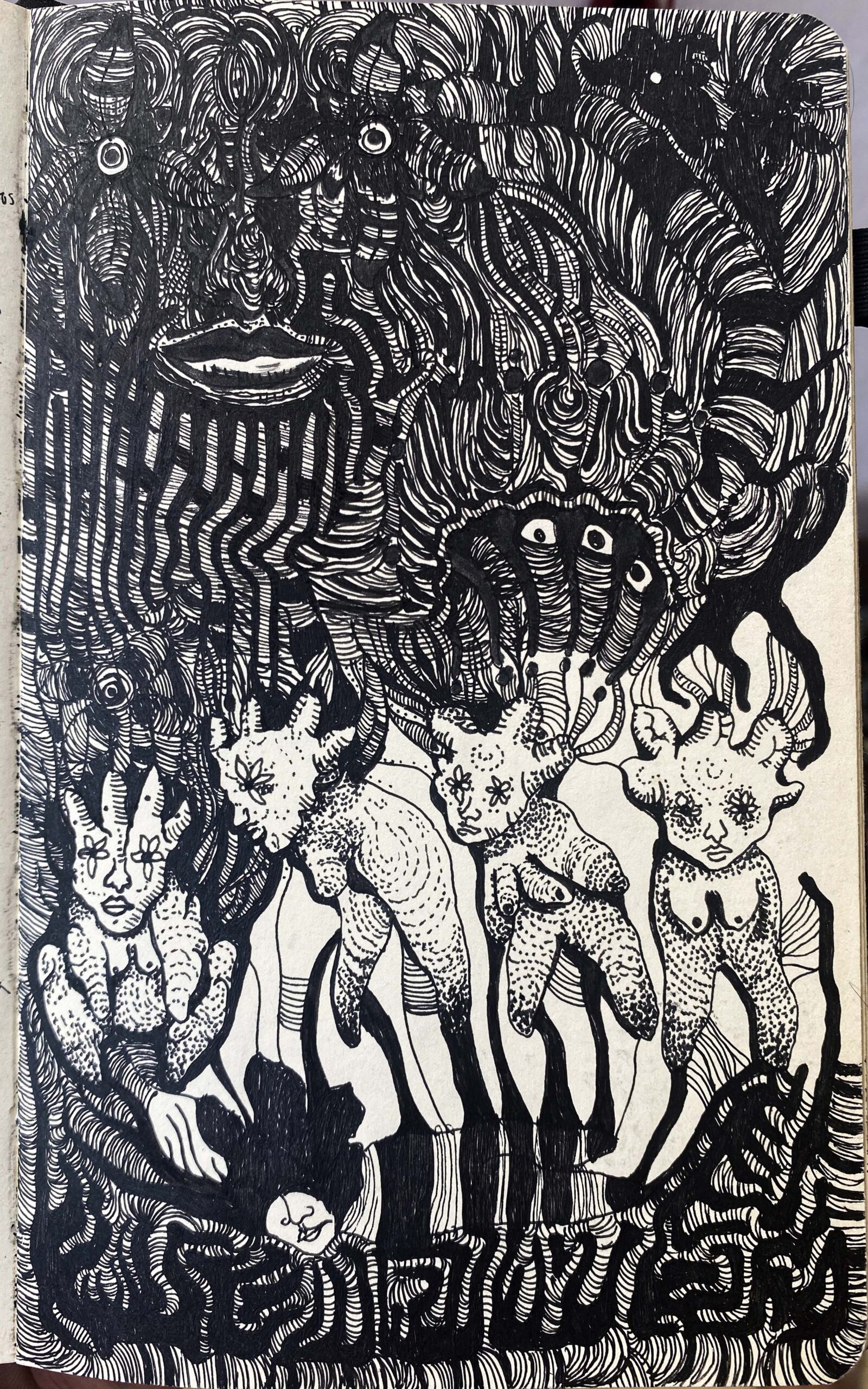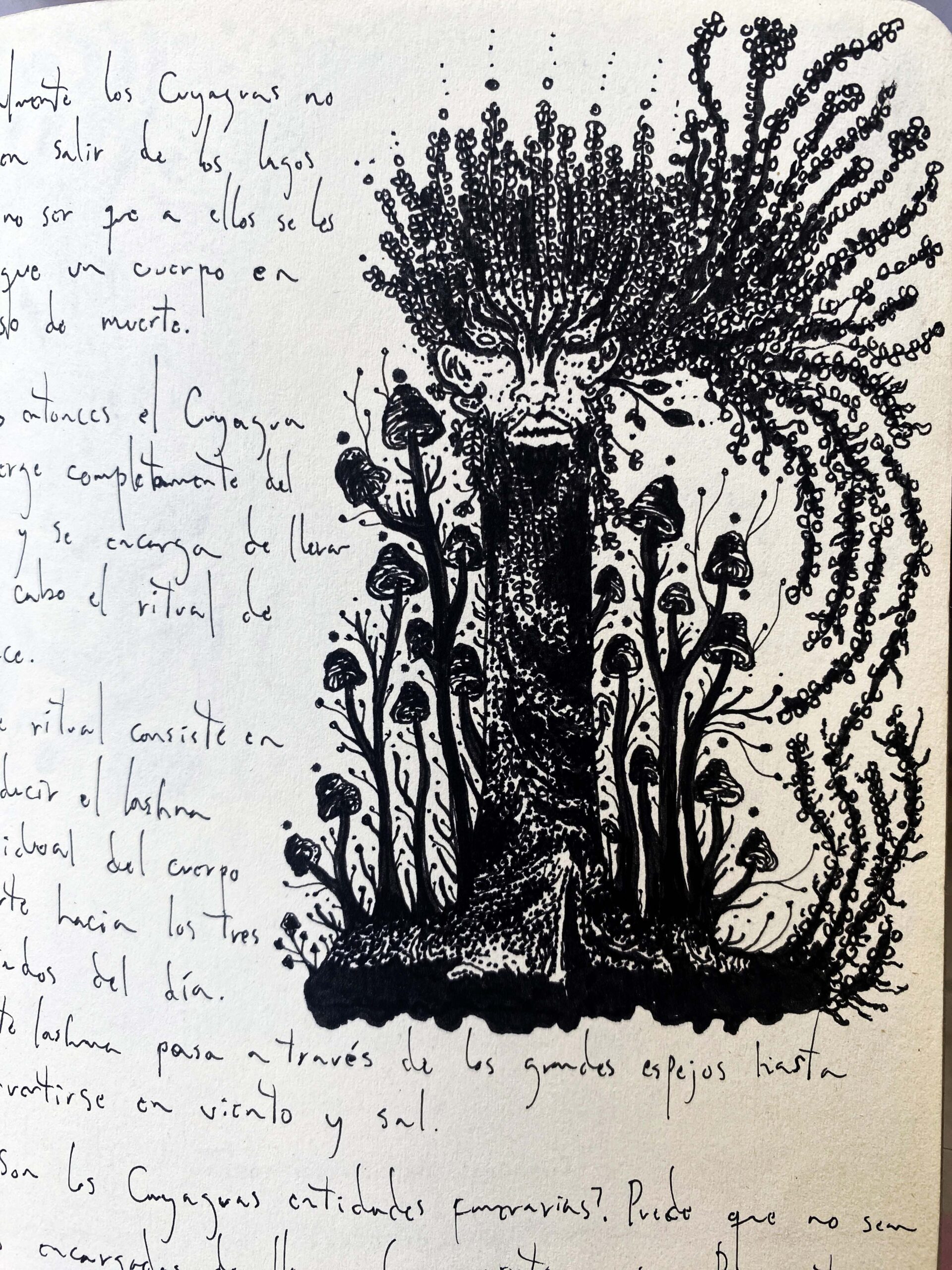 Ink drawing on porous paper notebook