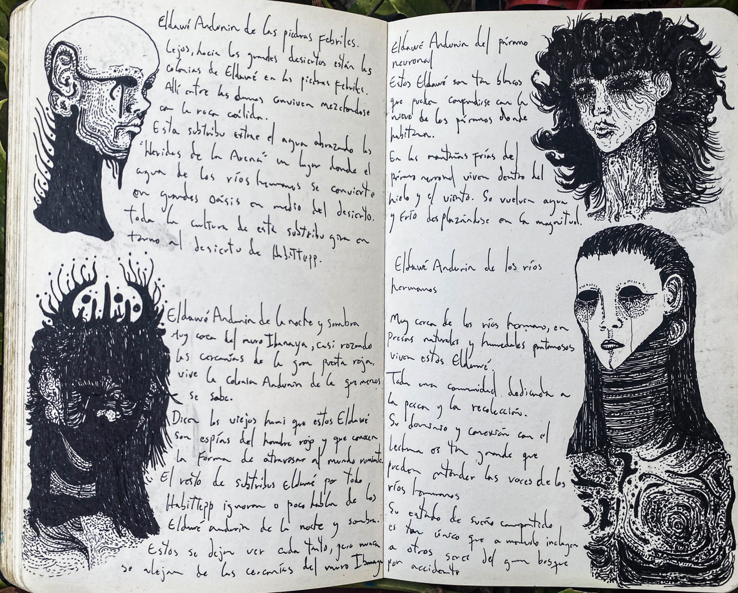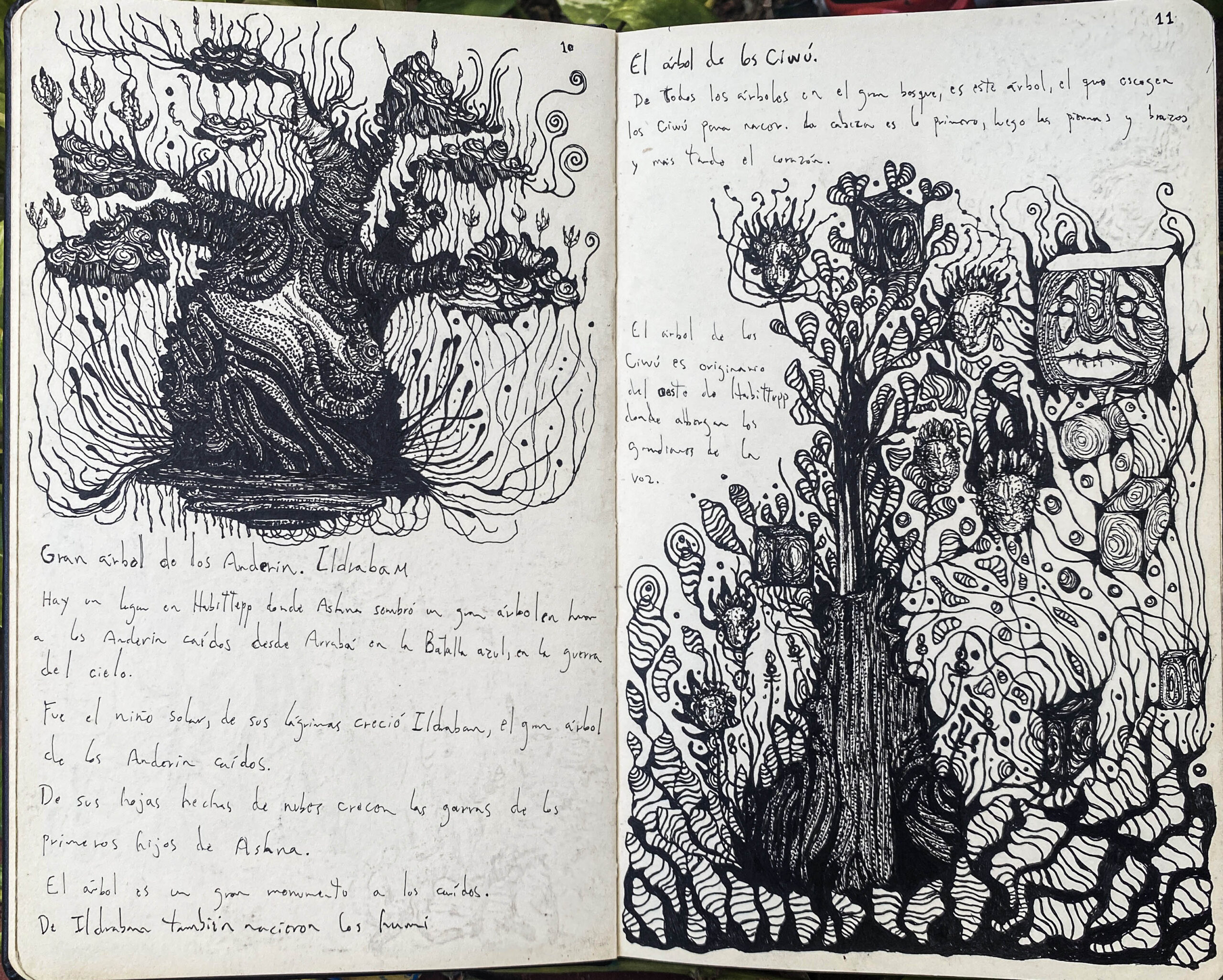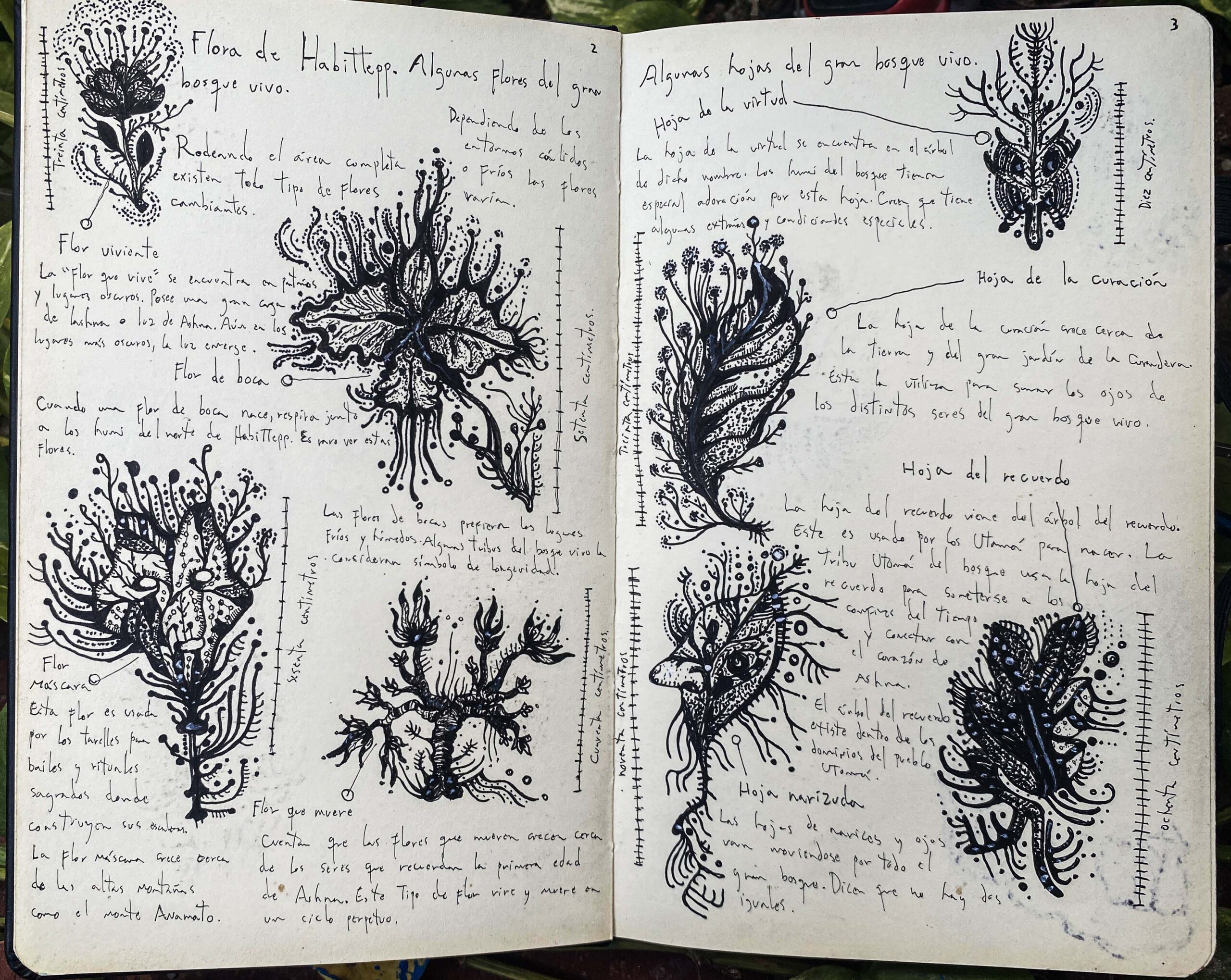A codex from a living world, created over the course of an entire year. Each emotion experienced was given its own symbology, turning my inner world into an open map of cultures, flora, and fauna.