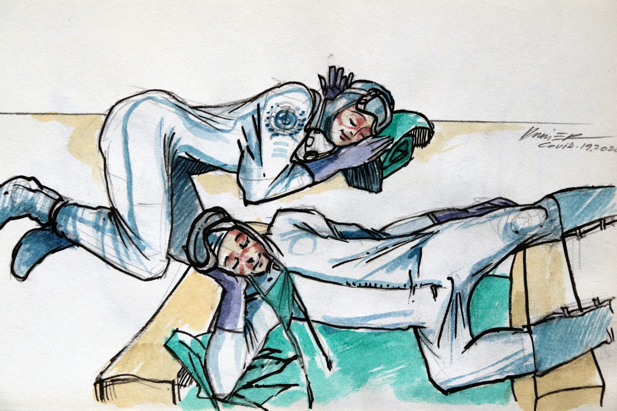 Esta serie de dibujos surgió de la necesidad de convivir con la crisis sanitaria mundial provocada por la enfermedad Covid-19.. Después de las dos primeras semanas en cuarentena y sin acceso al taller, una libreta que guardaba en casa se convirtió en el soporte de este tipo de cuaderno de bitácora. Un dibujo diario siempre publicado en mis redes sociales fue la expresión de inquietudes propias., pero también colectivo.