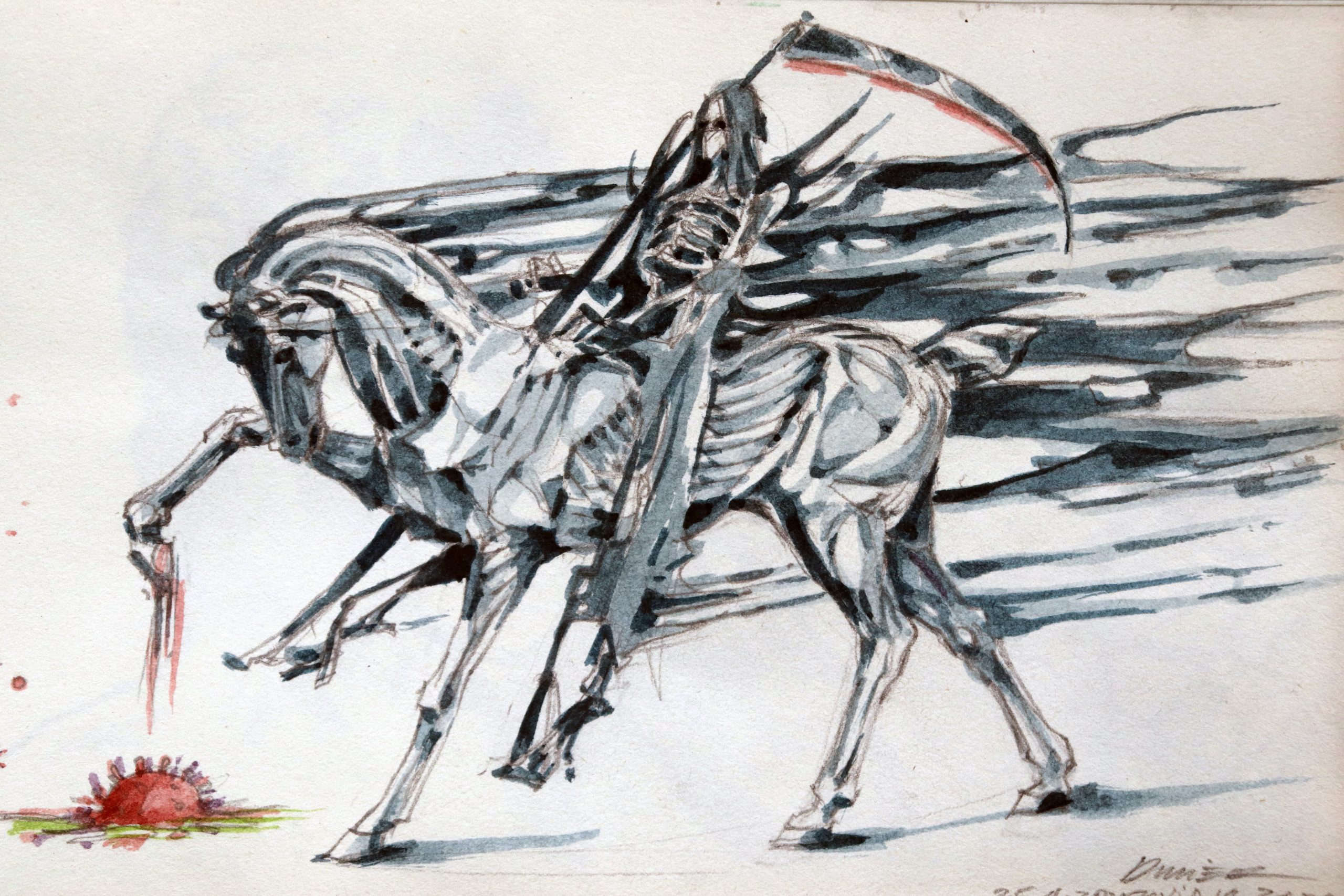 Esta serie de dibujos surgió de la necesidad de convivir con la crisis sanitaria mundial provocada por la enfermedad Covid-19.. Después de las dos primeras semanas en cuarentena y sin acceso al taller, una libreta que guardaba en casa se convirtió en el soporte de este tipo de cuaderno de bitácora. Un dibujo diario siempre publicado en mis redes sociales fue la expresión de inquietudes propias., pero también colectivo.