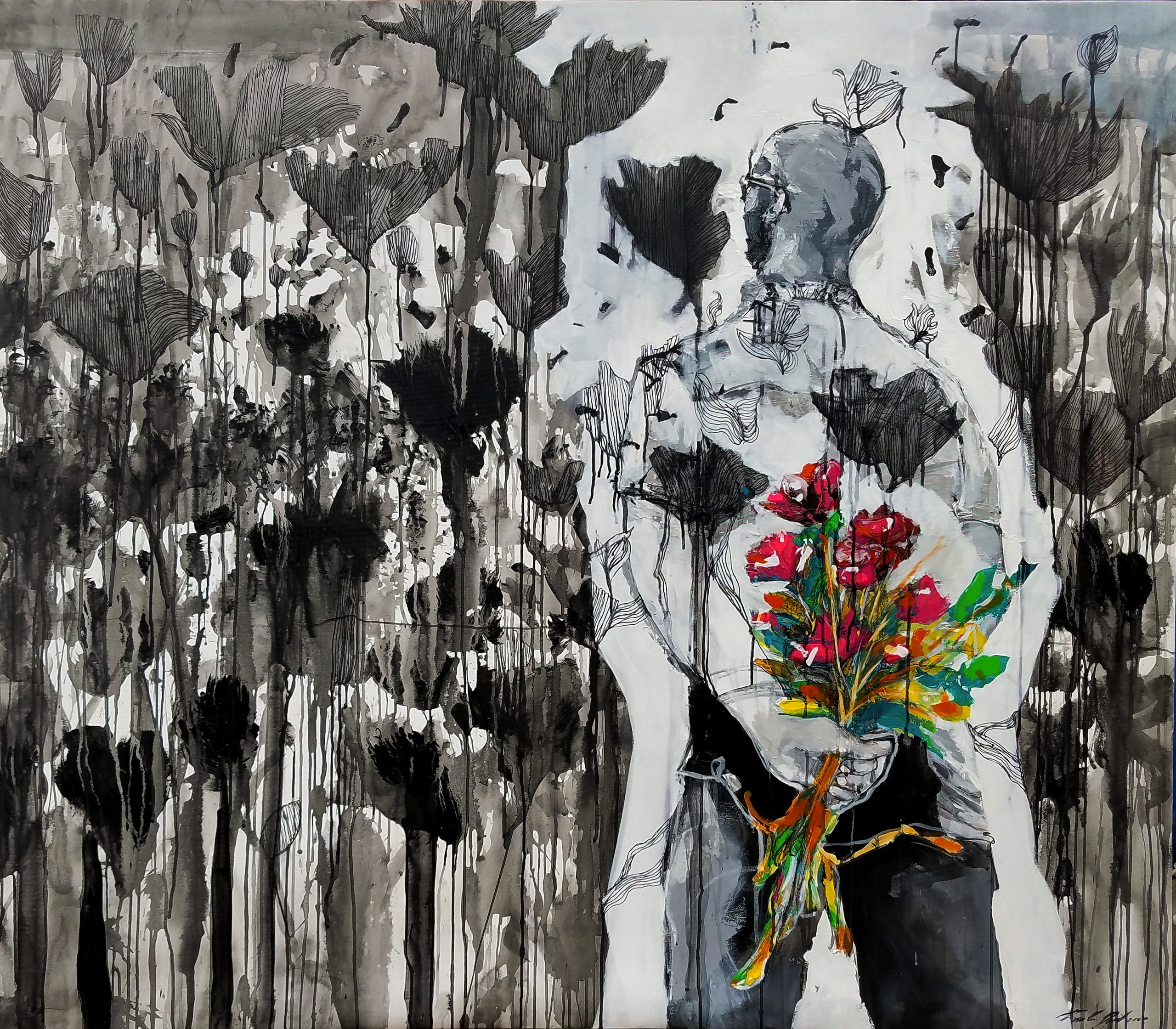Fábulas es una serie de obras que nos hablan en sentido figurado, desarrollado como una representación simbólica de la ausencia como concepto y manifiesto de una realidad emergente. Las figuras asumen posiciones como patrones desde lo formal y conceptual.. Proponen reevaluar el diálogo con el pasado, presente y futuro desde una sensibilidad autorreferencial. Dadas las circunstancias y condiciones, podríamos decir que son un espejo del tiempo. Cada evento desencadena una tormenta, un poco del efecto mariposa. Estas nociones o cualidades son aludidas por dispositivos de intermitencia creativa.: familia, memoria, ideales, libertad, el narcisismo existencial es un laboratorio de impulsos. Los estereotipos y su conceptualización se están registrando un poco, la necesidad de alertar a los sistemas de representaciones arquetípicas vistas en un contexto subjetivo, reforzado por la crisis.