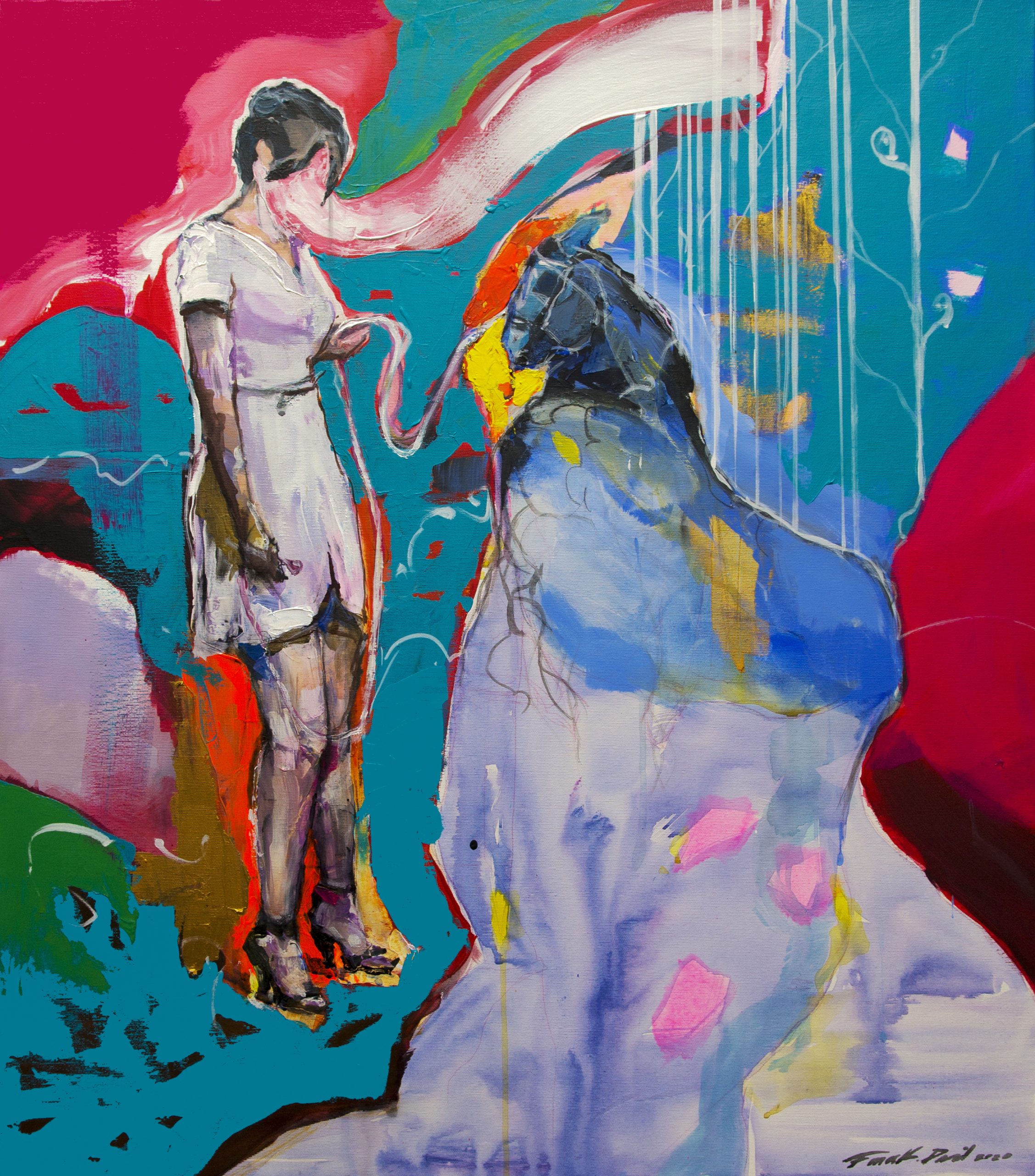 “FÁBULAS” es una serie de trabajos que nos hablan en sentido figurado, desarrollados como representación simbólica de la ausencia como concepto y manifiesto de una realidad emergente. Asumen posturas como patrones desde lo formal y conceptual. Proponen reevaluar el diálogo con el pasado, presente y futuro desde una sensibilidad autorreferencial. Dada las circunstancias y las condiciones pudiéramos decir que son espejo del tiempo. Cada suceso desencadena una tormenta, un poco del efecto mariposa. Estas nociones o cualidades se ven aludidas por dispositivos de intermitencia creativa: la familia, la memoria, los ideales, la libertad, el narcisismo existencial son un laboratorio de impulsos. Es un poco lo que nos va quedando registrado de los estereotipos y su conceptualización, la necesidad de alerta a sistemas de representaciones arquetípicos vistos en un contexto subjetivo, potenciado por la crisis.