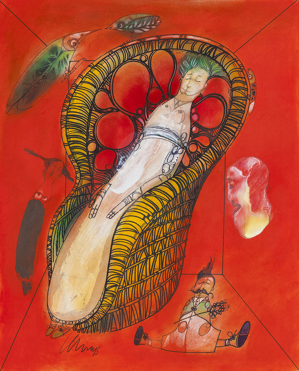 Aceite, Tinta y lápiz sobre papel