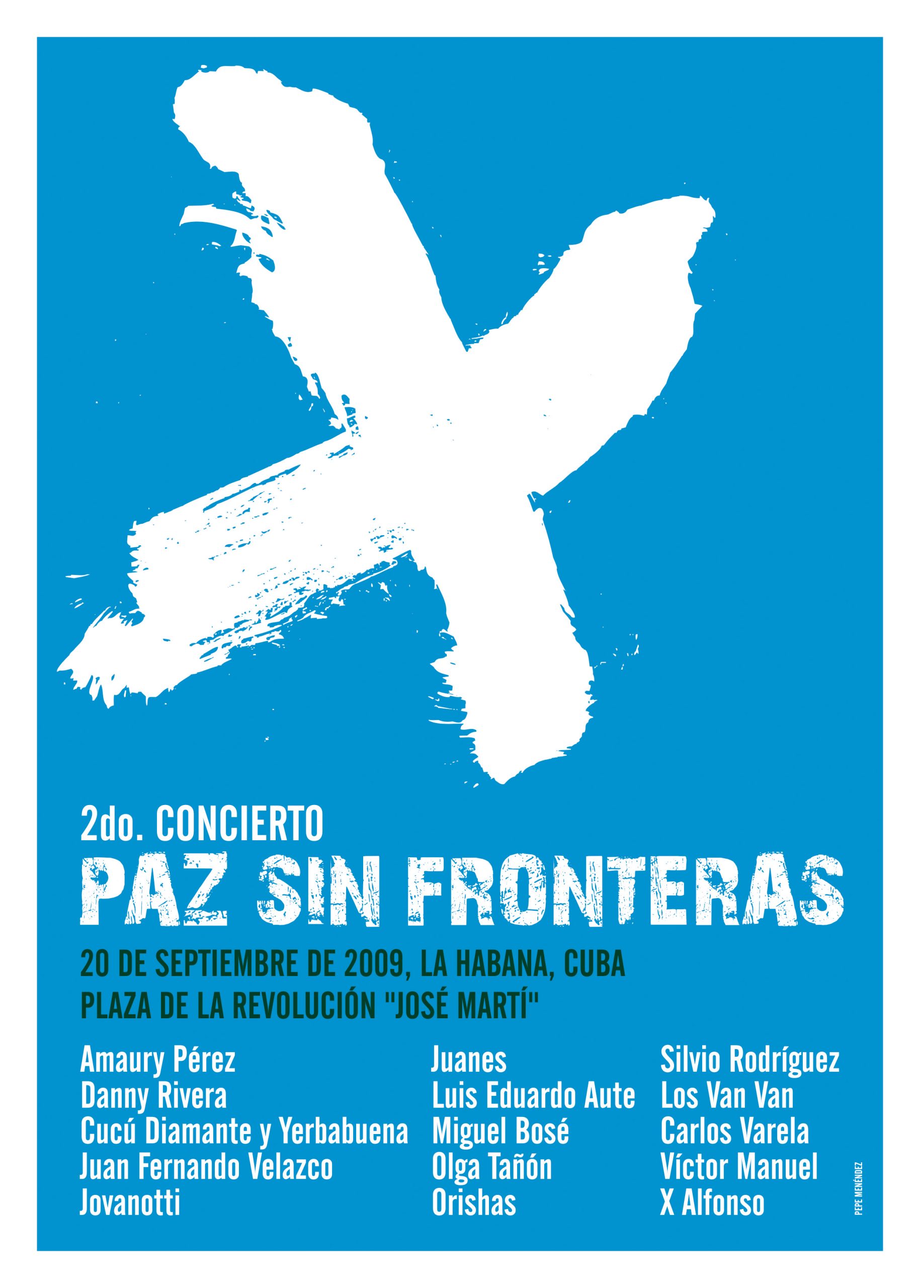 Cartel encargado por los organizadores de la segunda edición del Concierto Paz Sin Fronteras, un evento musical internacional de un día organizado por la estrella del pop colombiano Juanes. El concierto se desarrolló bajo una enorme presión., a favor y en contra, en La Habana y en Miami, Florida.