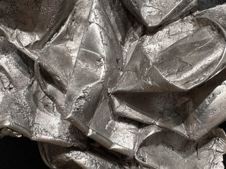 "Joya 5", de la serie “Las Joyas de Casiopea”, aborda el paisaje, elementos que forman parte del paisaje visual común, en una forma escultórica peculiar. La obra propone una comprensión de la escultura alejada del pedestal, mientras se apodera de la pared. como el micelio, presente en la tierra comunicando extensas áreas de vegetación como una inmensa red de metro, el trabajo creativo está interconectado con el entorno en el que nos desarrollamos y con nuestros recuerdos. Basado en esta suposición, Me interesa explorar visualidades que de alguna manera remitan a esos espacios anclados al ser y la memoria..