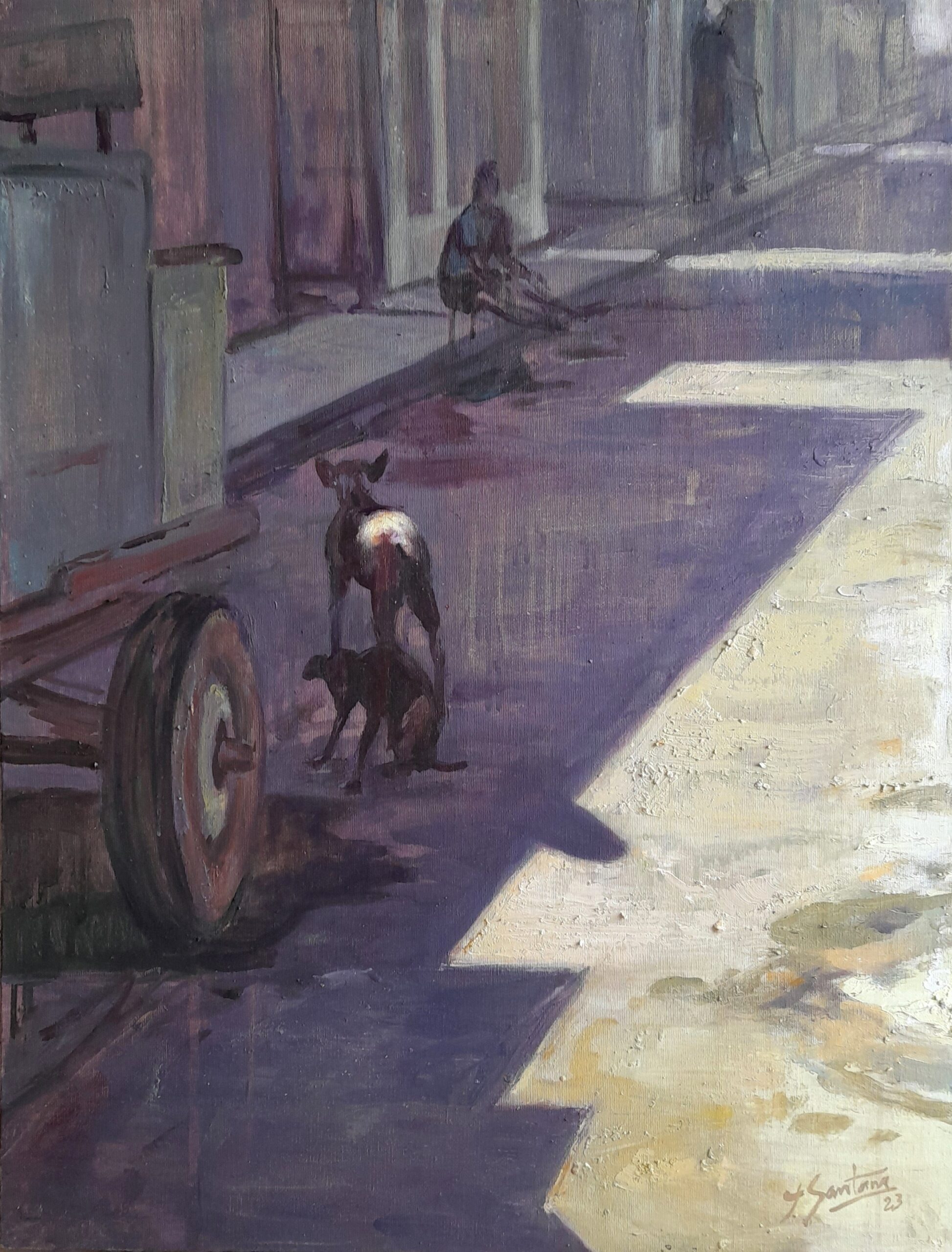 El espíritu de las piezas varía según mi alter ego.; una parte de mi, instintivo y vital, realiza catarsis emocional y exorcismo pictórico sobre el lienzo, o celebra la existencia tal como es; como su reverso, Recurro al lirismo romántico, contemplativo y poético., deleitándose en la grandeza de lo simple y anónimo, donde encuentro una realidad paralela a este mundo de cuidados y apariencias.